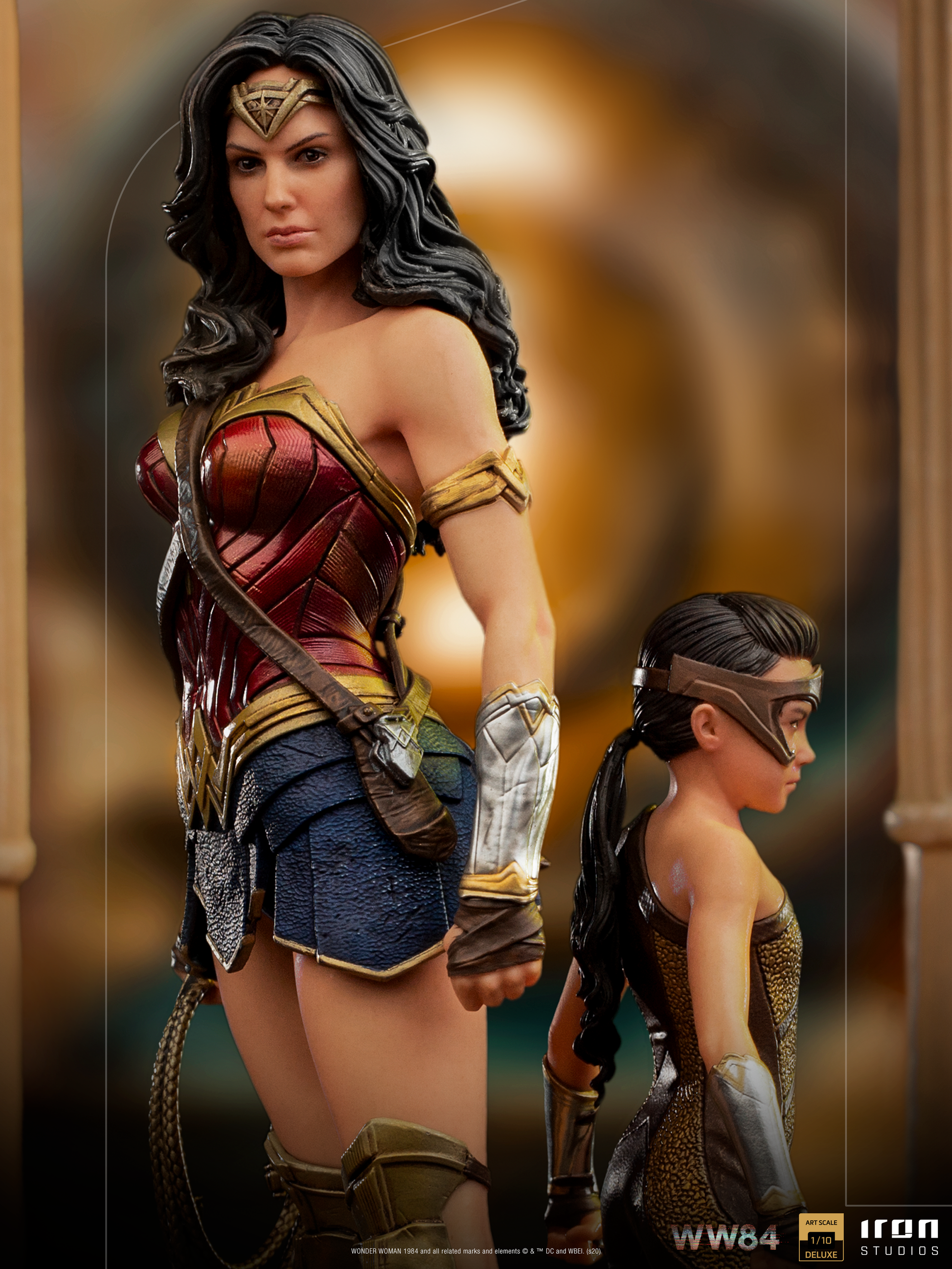 - 🎨 Escultura de Alta Precisión: Detalles increíblemente realistas que capturan a Wonder Woman y Diana Prince de WW84.